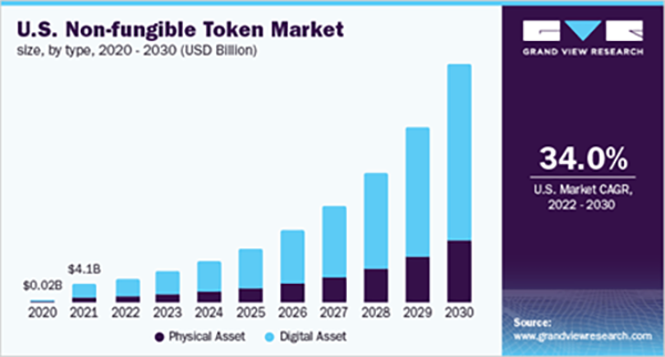 Nguyên nhân tăng trưởng được dự đoán do nhu cầu ngày càng tăng đối với NFT nhờ tính độc đáo, tính cá nhân và tính minh bạch cùng với các tính năng khác của loại tài sản số này.