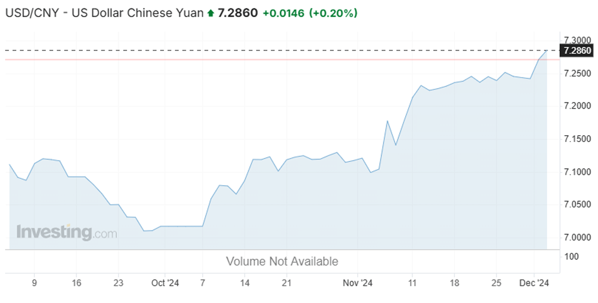 Tuy nhiên, các động thái hỗ trợ này có thể góp phần đẩy đồng NDT giảm sâu hơn nữa, bên cạnh một đồng USD đang mạnh lên. Một đồng NDT suy giảm có thể giúp Trung Quốc ứng phó với những chính sách thuế của ông Trump, nhưng cũng có thể tạo ra sự bất ổn hơn trên thị trường tài chính tiền tệ nước này.