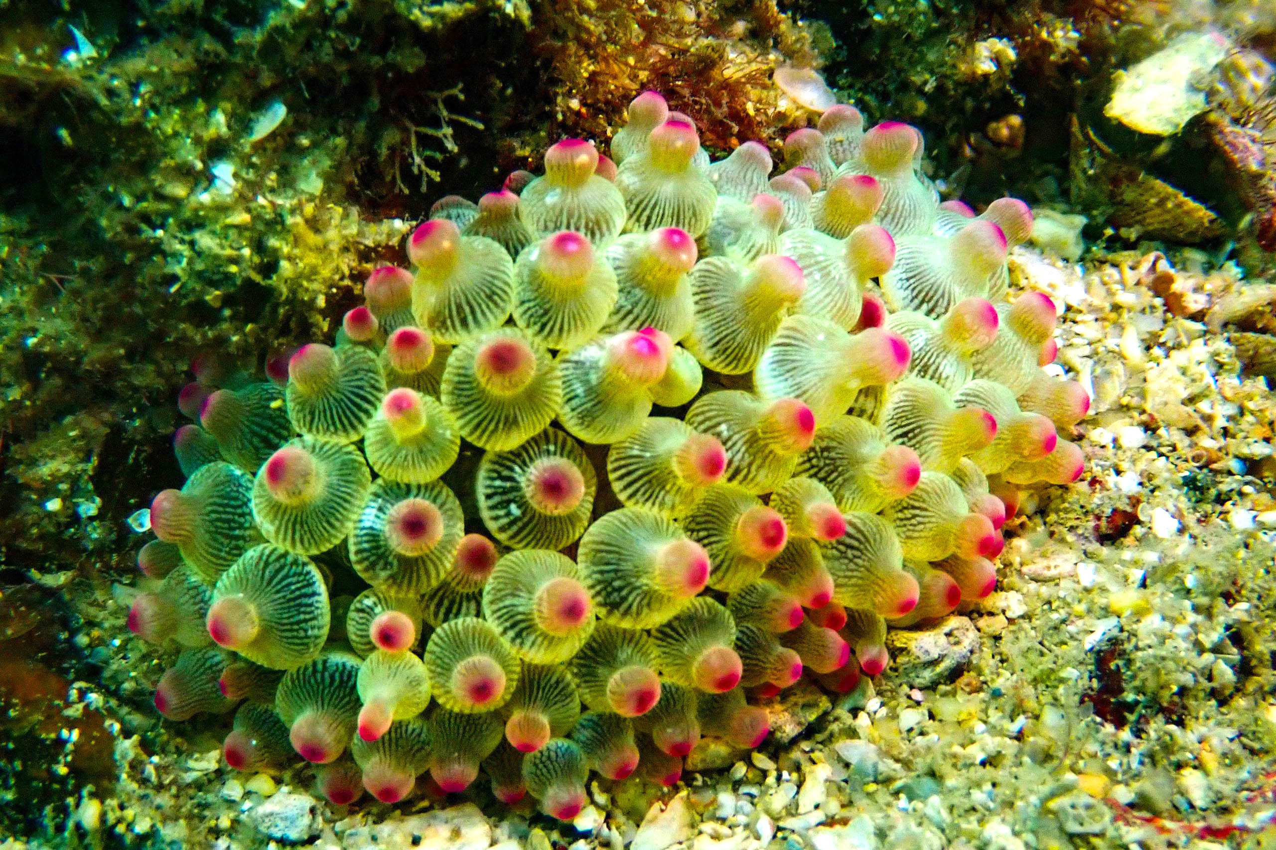 Vùng biển tại đây xa bờ nên nước sạch, xanh trong, hệ sinh thái dưới biển phong phú, nguyên sơ và chưa bị tác động. Đặc biệt, thiên nhiên ưu ái cho nơi đây có rặng san hô lớn, đa sắc màu. Len lỏi trong đó là những loài tôm, cá và thuỷ sinh.