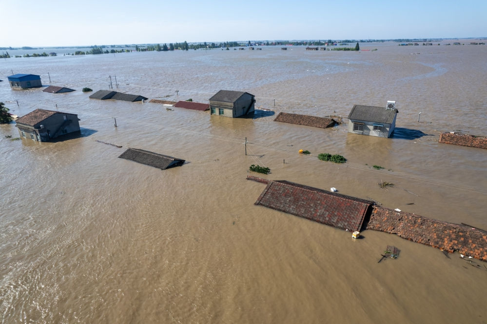 Vỡ đê ở Trung Quốc, nhiều nhà cửa ‘lênh đênh’ giữa nước lũ