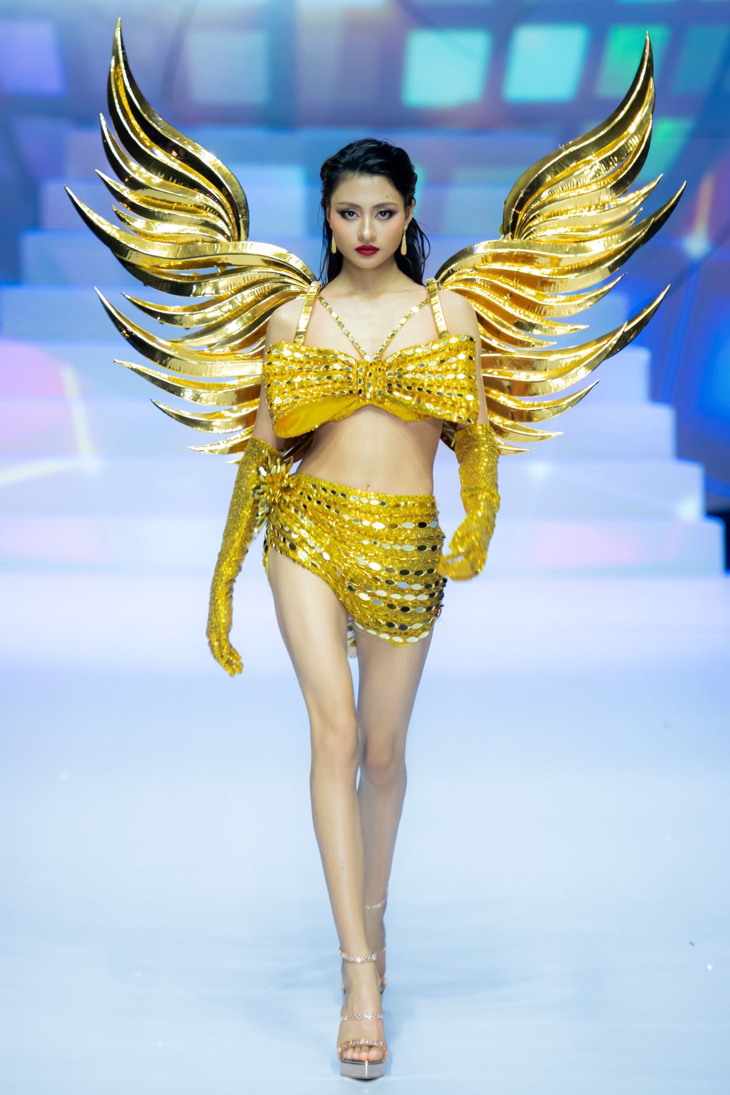 'Người đẹp biển' tại Hoa Hậu Hoàn Vũ Việt Nam 2022 - Ngô Bảo Ngọc trình diễn vị trí vedette cho màn 2 BST 'Cosmo Warrior'.