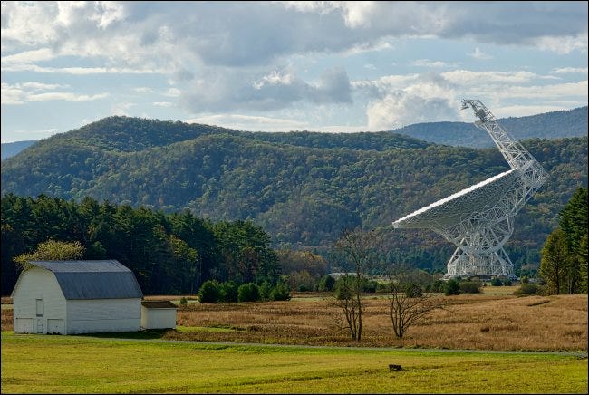 Kính viễn vọng Robert C. Byrd Green Bank thu thập tín hiệu vô tuyến sâu trong không gian tại Green Bank, Tây Virgina (Ảnh: John M. Chase/Shutterstock)