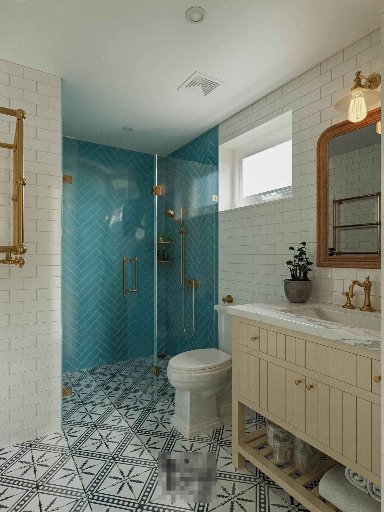 Phòng vệ sinh cổ điển, thanh lịch cũng có nhiều ánh sáng và gió mát.
