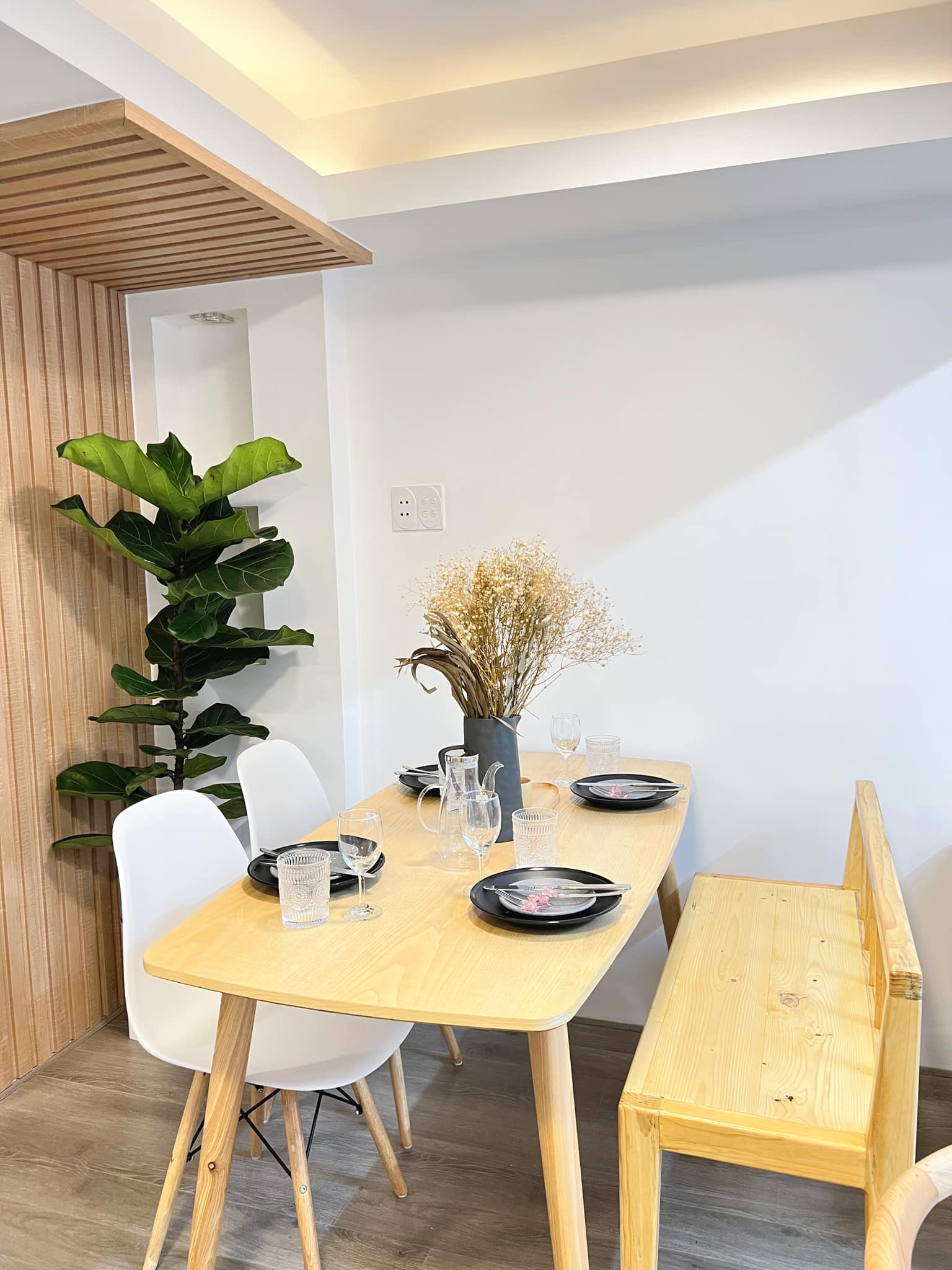 Nhà nhỏ nhưng khu bếp vẫn được ưu tiên diện tích hơn, vì gia chủ là người thích bày biện và nấu nướng. Bếp đẹp sẽ tăng cảm xúc và cảm hứng nấu. Hộc tủ thiết kế hợp lý, cất giấu đồ cho gọn.