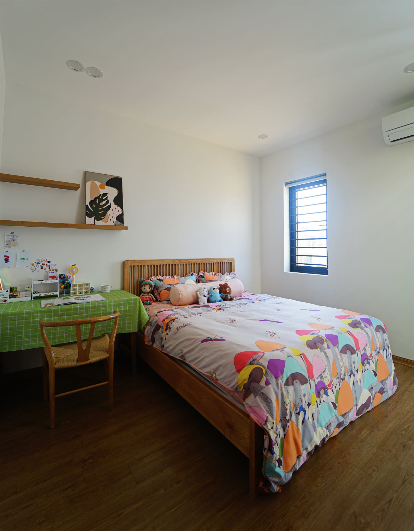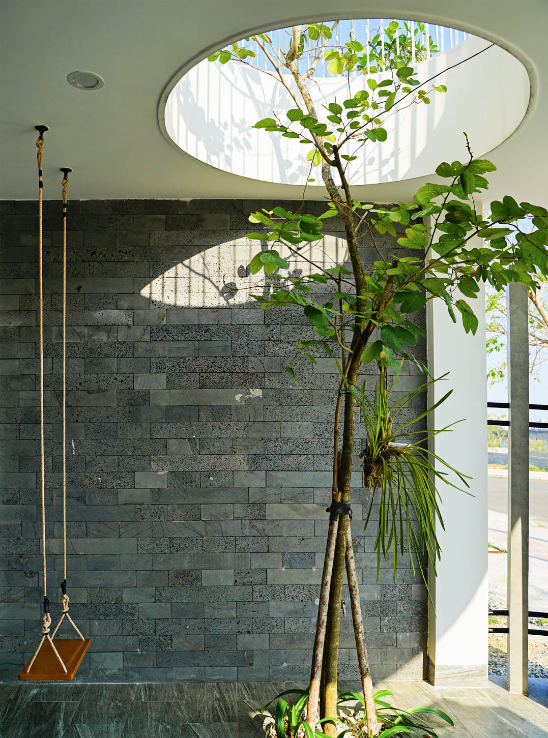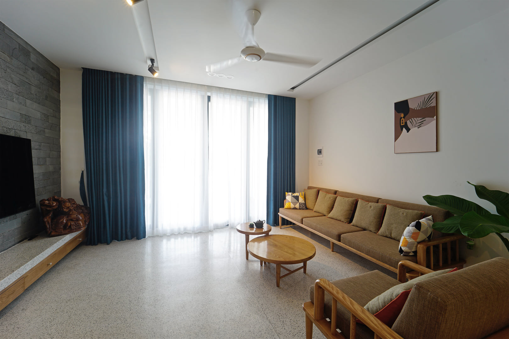 Ngôi nhà được thiết kế dành cho một cặp vợ chồng trẻ cùng 3 con nhỏ sinh sống. Công trình nằm nép mình trong một khu vực đang phát triển, những không gian xanh dần biến mất do quá trình đô thị hóa. Vì vậy, sau những vội vã với thời gian bên ngoài, gia chủ cần một không gian sống chan hòa nắng gió và thanh bình để tận hưởng giây phút an yên bên gia đình.