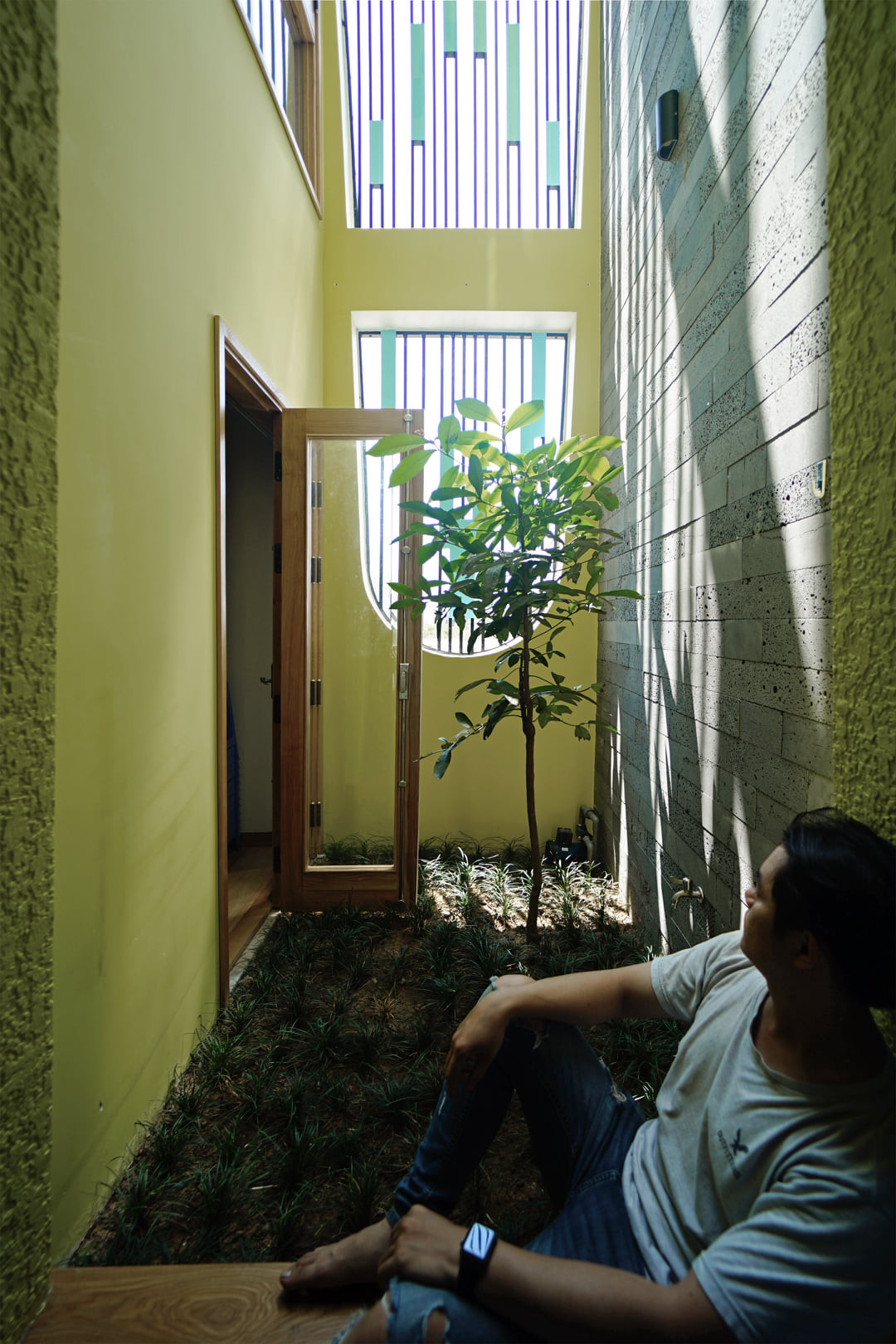 Ngoài ra, với việc đan xen yếu tố cây xanh và bổ sung diện tích sân vườn vào từng khu vực lân cận của mỗi không gian sống, ngôi nhà như một sự kết nối liền mạch, không giới hạn giữa nhà và sân vườn tạo cảm giác thanh bình.