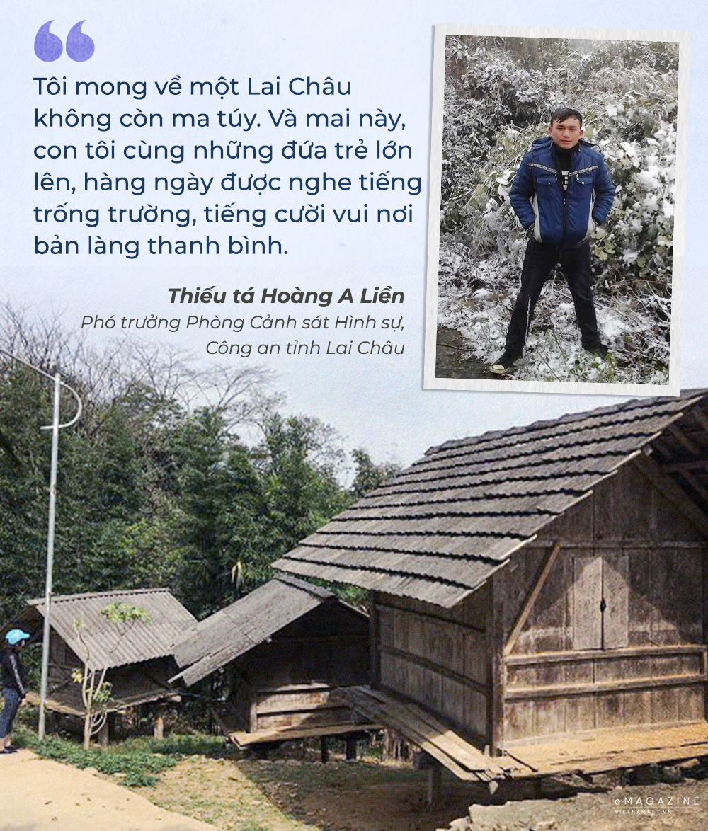 “Lúc đó có những bản cứ trăm hộ thì đến 80-90 nhà có bàn đèn. Người dân gieo cây thuốc phiện như gieo lúa, nương nào cũng tím ngắt màu hoa. Đường vào bản dốc, mùa mưa thì lầy lội, bản bị cô lập, chẳng có sóng điện thoại, không có điện lưới. Tôi với anh em mang gạo, muối, nồi niêu, ăn ở cả tuần trong rừng để phá nhổ cây thuốc phiện” - Thiếu tá Liền kể.