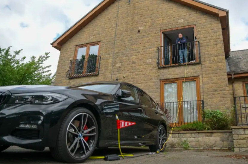 Chính vì lẽ đó, anh đành phải kéo một dây điện dài từ phòng ở của mình trên tầng 2 xuống dưới sân đỗ xe để sạc điện cho chiếc BMW của mình. Việc làm có vẻ hơi bất tiện này lại là cách gần như duy nhất để Joe sạc pin cho chiếc xe của mình hàng ngày.