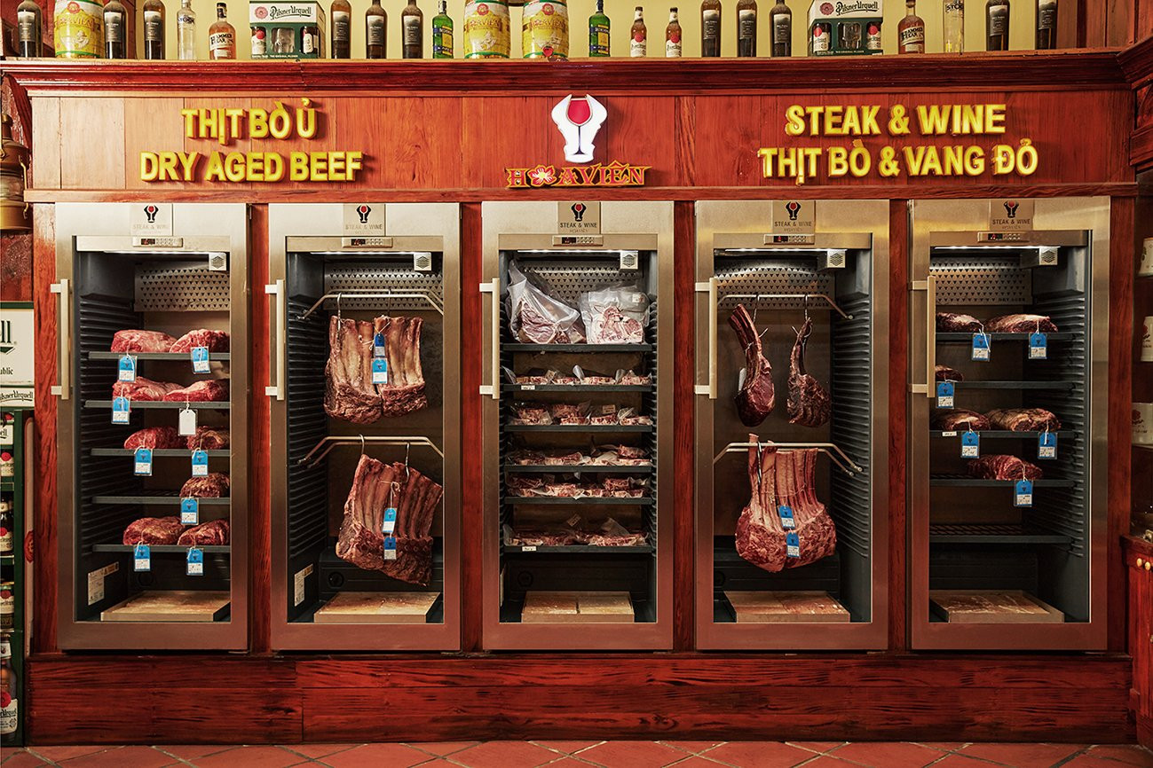 Đại diện Hoa Viên cho biết, nhà hàng đã đầu tư một hệ thống thiết bị tủ ủ thịt Dry Ager được sản xuất tại Đức. Với cơ chế điều khiển thông minh, môi trường bên trong tủ luôn giữ được trạng thái vi khí hậu lý tưởng nhất cho quá trình ủ thịt. Thiết bị được lắp đặt hệ thống khử trùng độc quyền toàn cầu của hãng.