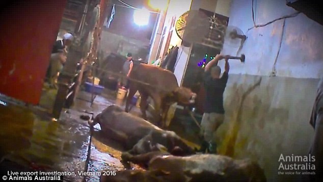 Dùng búa tạ đập vào đầu bò cho tới chết là hình ảnh thường thấy ở các lò giết mổ trâu bò nhỏ lẻ tại Việt Nam. Song vấn đề này lại gây chấn động quốc tế vì hành vi trên được cho là vô nhân đạo.