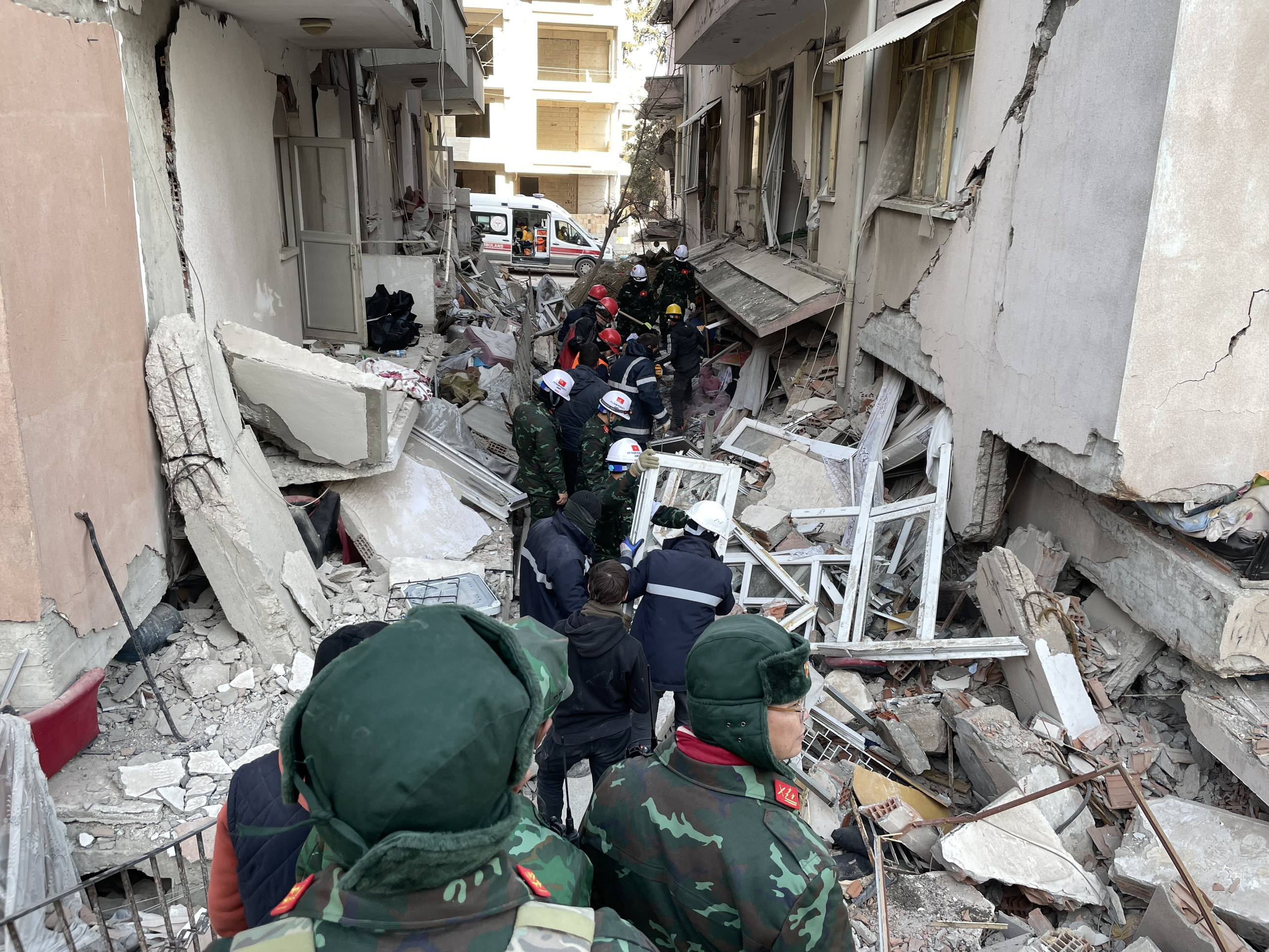 Đội chó nghiệp vụ và Tổ trinh sát số 1 của Đội Công binh cứu sập của QĐND Việt Nam thực hiện nhiệm vụ là tại xã Haci Omet, huyện Alpaget, tỉnh Hatay. Trên đường cơ động, người dân khi biết tin đã liên hệ nhờ lực lượng của QĐND Việt Nam giúp tìm kiếm người thân tại một số toà nhà bị sập dọc đường Rustem Tumer Pasa thuộc Antakya, thủ phủ của tỉnh Hatay.