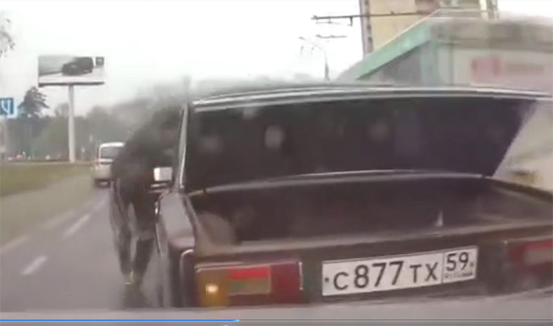 Thay vì đưa xe vào lề, người đàn ông này lại "hồn nhiên" sửa chiếc xế hộp của mình ở giữa đường. Hậu quả là ô tô của người đàn ông đã bị một xe có gắn camera hành trình khác từ phía sau lao đến và đâm trúng.