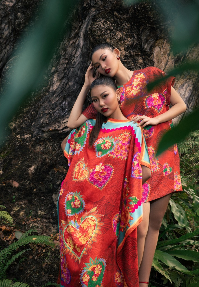 Bộ sưu tập chọn chất liệu gấm taffeta, voan lụa làm chủ đạo. Họa tiết hoa ngũ sắc cách điệu - từng được giới thiệu trong show diễn Ký ức tuổi thơ - được thổi làn gió mới khi lồng ghép cùng chi tiết trái tim. Hoa ngũ sắc rực rỡ vốn để truyền tải thông điệp về tình yêu nồng nàn và sự lãng mạn.
