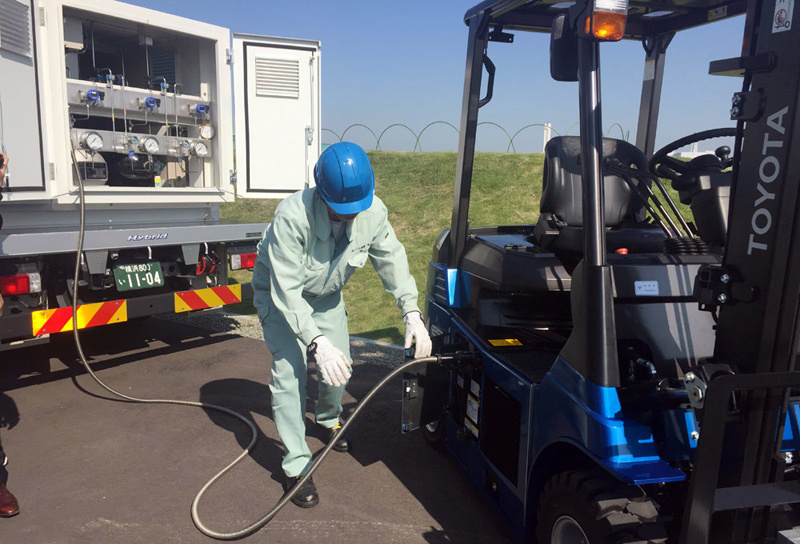Tại thành phố cảng Yokohama (Nhật Bản), Toyota mới đầu tư một trung tâm sản xuất hydro bằng phương pháp điện phân nước. Sử dụng nguồn điện gió để điện phân nước, tạo ra hydro. Sau đó, hydro được hóa lỏng, chứa trong các bồn, rồi bơm vào xe ô tô chuyên dụng. Những chiếc xe này sẽ vận chuyển hydro, cung cấp cho những chiếc xe sử dụng pin nhiên liệu.