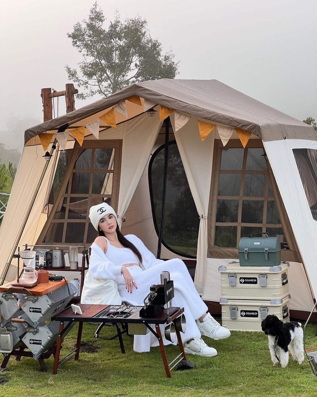 Cô cho biết: "Đón bình minh tại khu đất mới thân yêu của mình. Xuất sắc 10/10 luôn. Không biết cả nhà chấm bao nhiêu điểm".