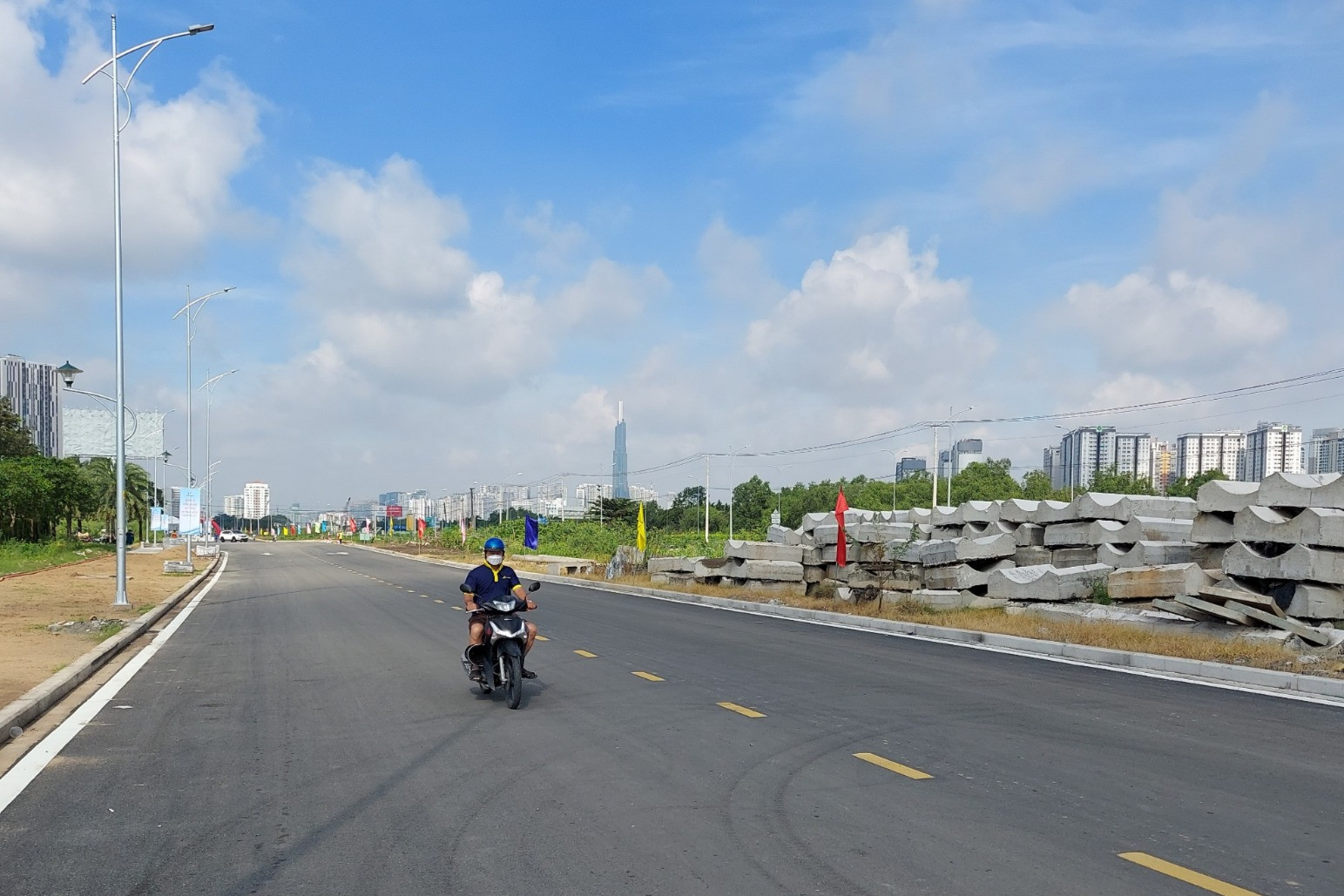 Trong sáng nay, đoạn 1 dài hơn 3,2km, nối đại lộ Mai Chí Thọ đến đường Đỗ Xuân Hợp đã chính thức thông xe. Đoạn còn lại dài gần 700m, nối từ đường Đỗ Xuân Hợp đến đường Vành đai 2 hiện đang vướng mặt bằng nên chưa thể hoàn thiện.