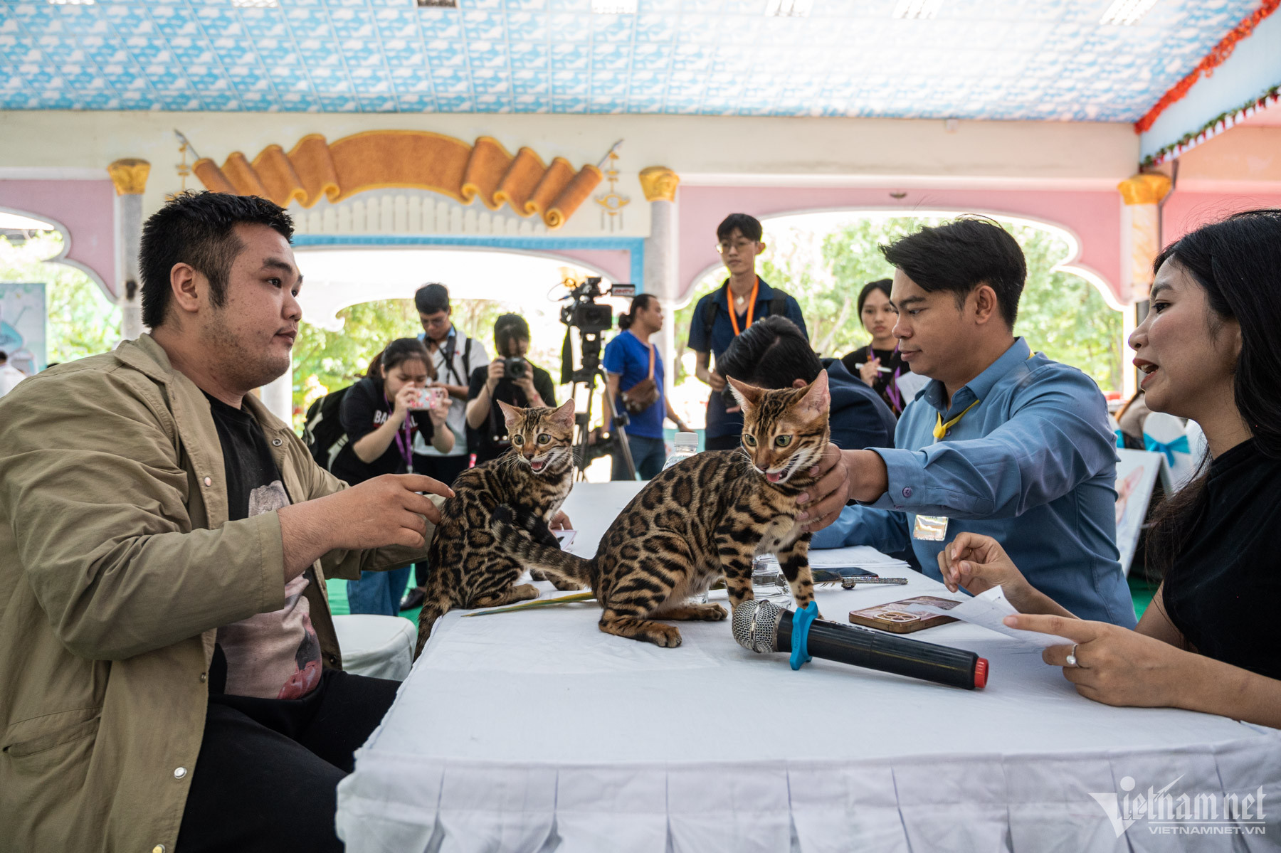 Hai chú mèo giống mèo Bengal của anh Phương Chí Vinh (quận 8) có bộ lông hệt như những chú báo rừng, khá gây ấn tượng. Được biết, mèo Bengal được xếp trong top những giống mèo hiếm và khó gặp nhất trên thế giới. Mỗi bé mèo của anh Vinh có giá 70 triệu đồng.