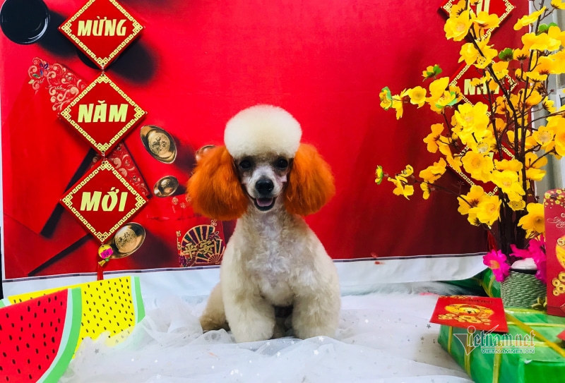 Khâu chụp ảnh Tết cho thú cưng tại đây cũng được chị Thảo chuẩn bị chu đáo, chuyên nghiệp. Ngoài được cắt tỉa lông, móng, thú cưng còn được chuẩn bị những bộ đồ Tết bắt mắt.