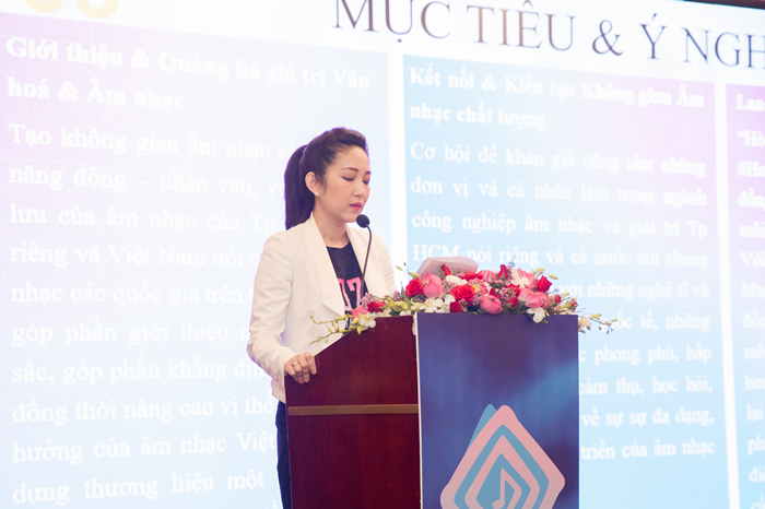 | NSƯT Thanh Thúy, Phó Giám đốc Sở Văn hóa TP HCM, phát biểu trong buổi công bố Lễ hội Âm nhạc Quốc tế "Hò dô". |