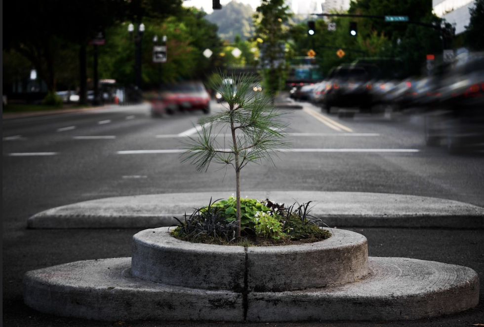 Vào năm 1948, khi chiếc cột cuối cùng bị đổ và cỏ mọc lan ra xung quanh, Dick Fagan, một nhà báo viết cho tờ Oregon Journal, quyết định tự tay trồng cây và hoa vào chiếc hố. Từ cửa sổ văn phòng, Fagan có thể nhìn thấy "công trình" của mình nằm trên con đường chạy qua tòa nhà nơi ông làm việc.