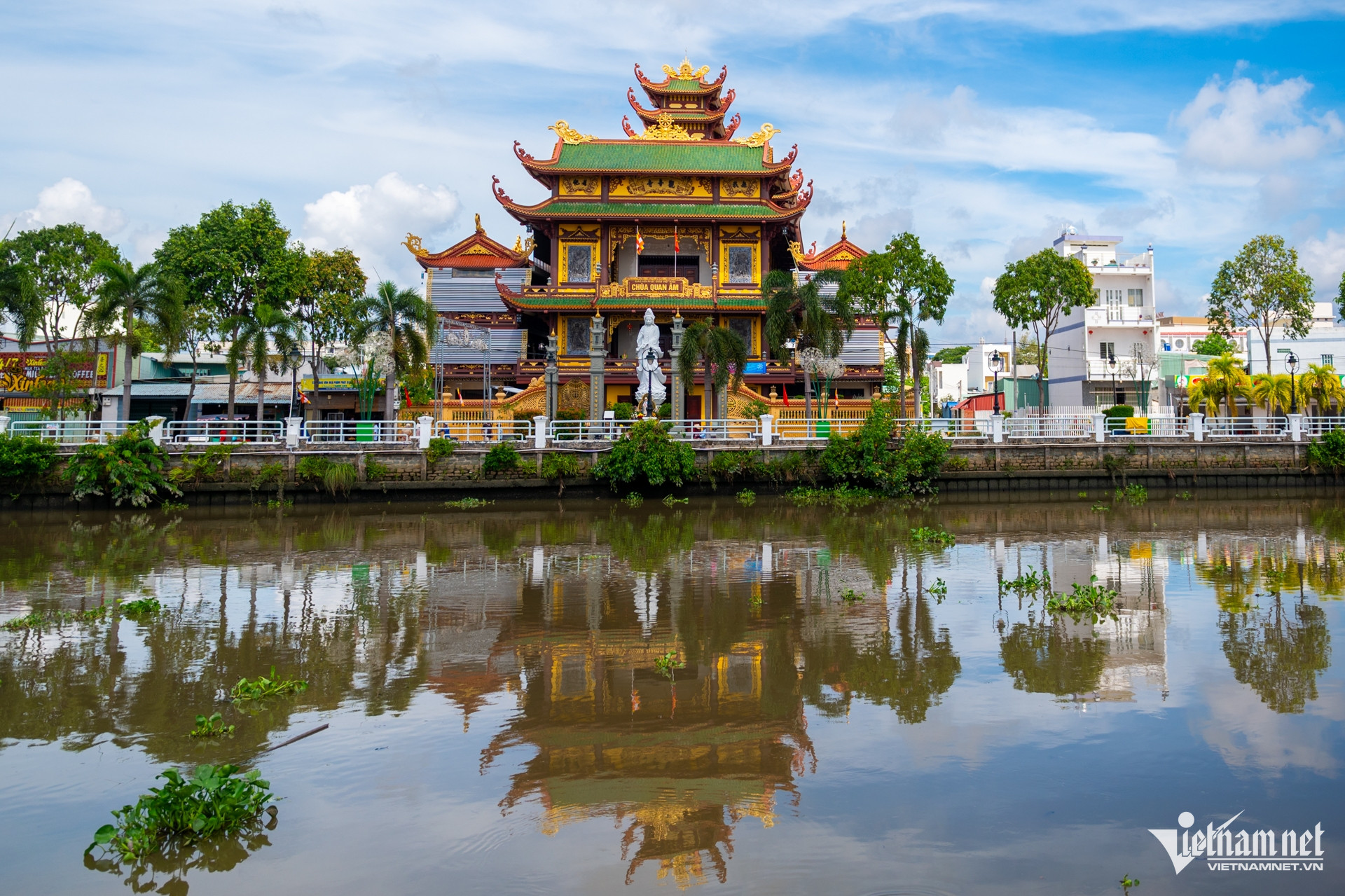 Chùa Quan Âm nằm trên bờ kè kênh Bảo Định, có lịch sử 206 năm tuổi là điểm đến tâm linh của người dân địa phương.