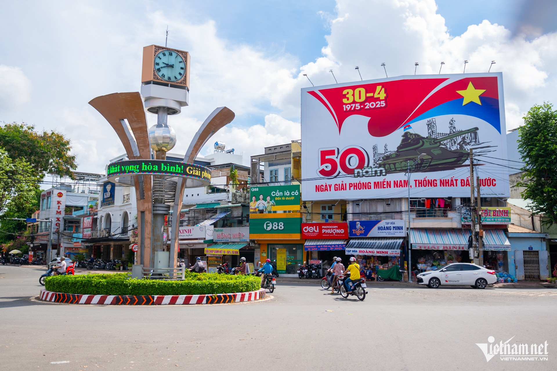 Trong ảnh là tháp đồng hồ ở bùng binh giao lộ Nguyễn Trung Trực - Võ Văn Tần thuộc trung tâm thành phố.