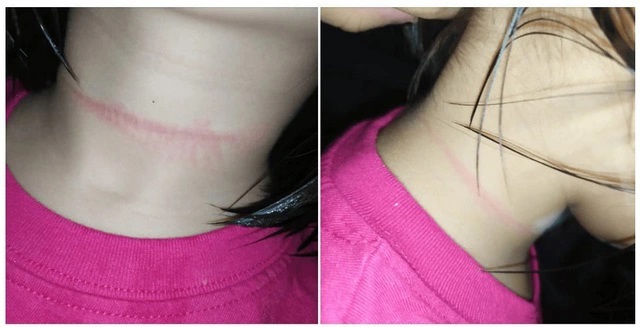 Vết hằn trên cổ một bé gái 4 tuổi người Philippines vì thực hiện theo thử thách "Blackout" (Ảnh: YN).
