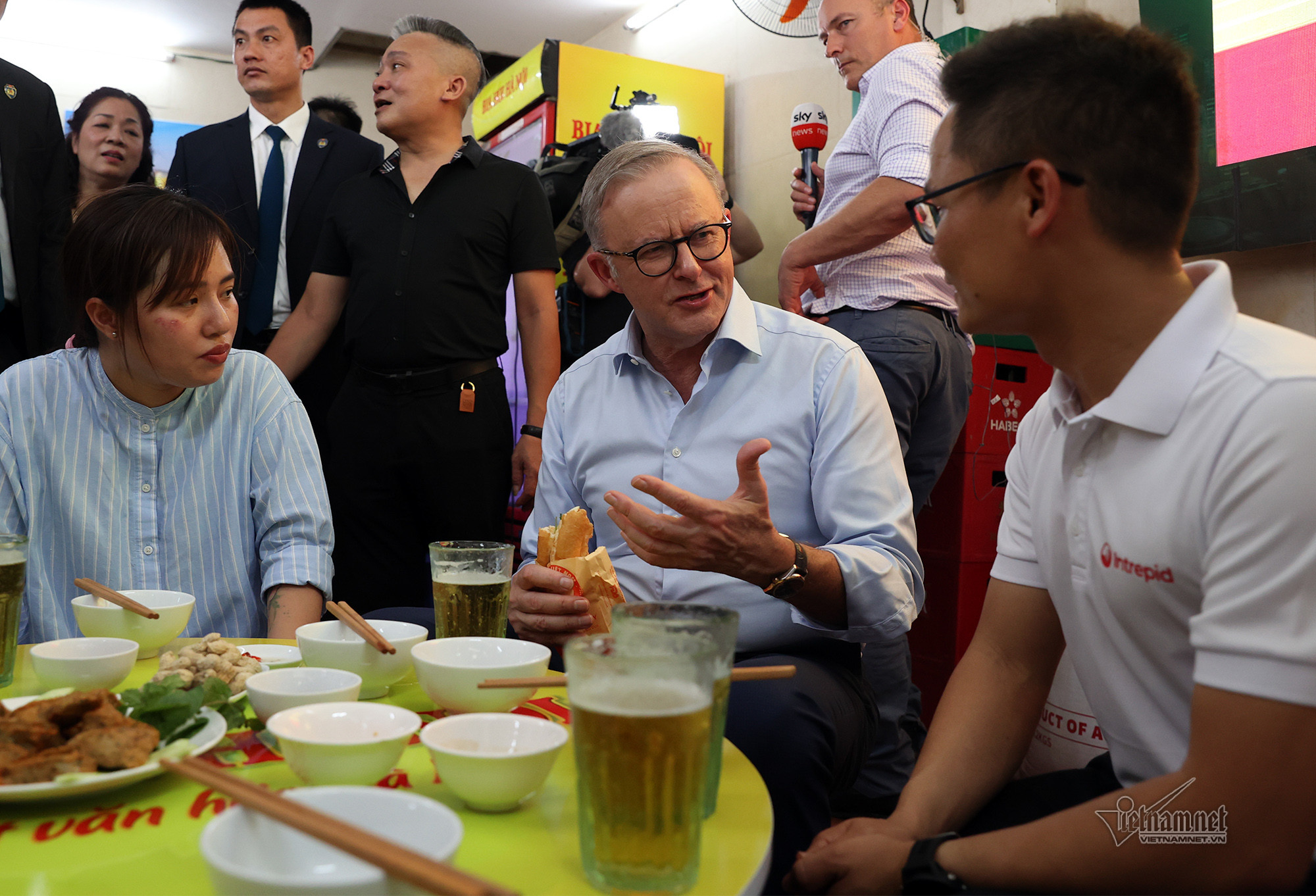 Trao đổi với VietNamNet, anh Nguyễn Hạnh (người ngồi cùng Thủ tướng Anthony Albanese) cho biết: "Bữa trưa nay diễn ra trong khoảng 30-40 phút, tôi có giới thiệu với Thủ tướng về ẩm thực, bia và cách uống bia của người Việt Nam. Ngài Thủ tướng chia sẻ rằng trong các món ăn hôm nay, ông thích nhất món chả cá. Ông rất vui trước tình cảm và sự hiếu khách của người dân Việt Nam".