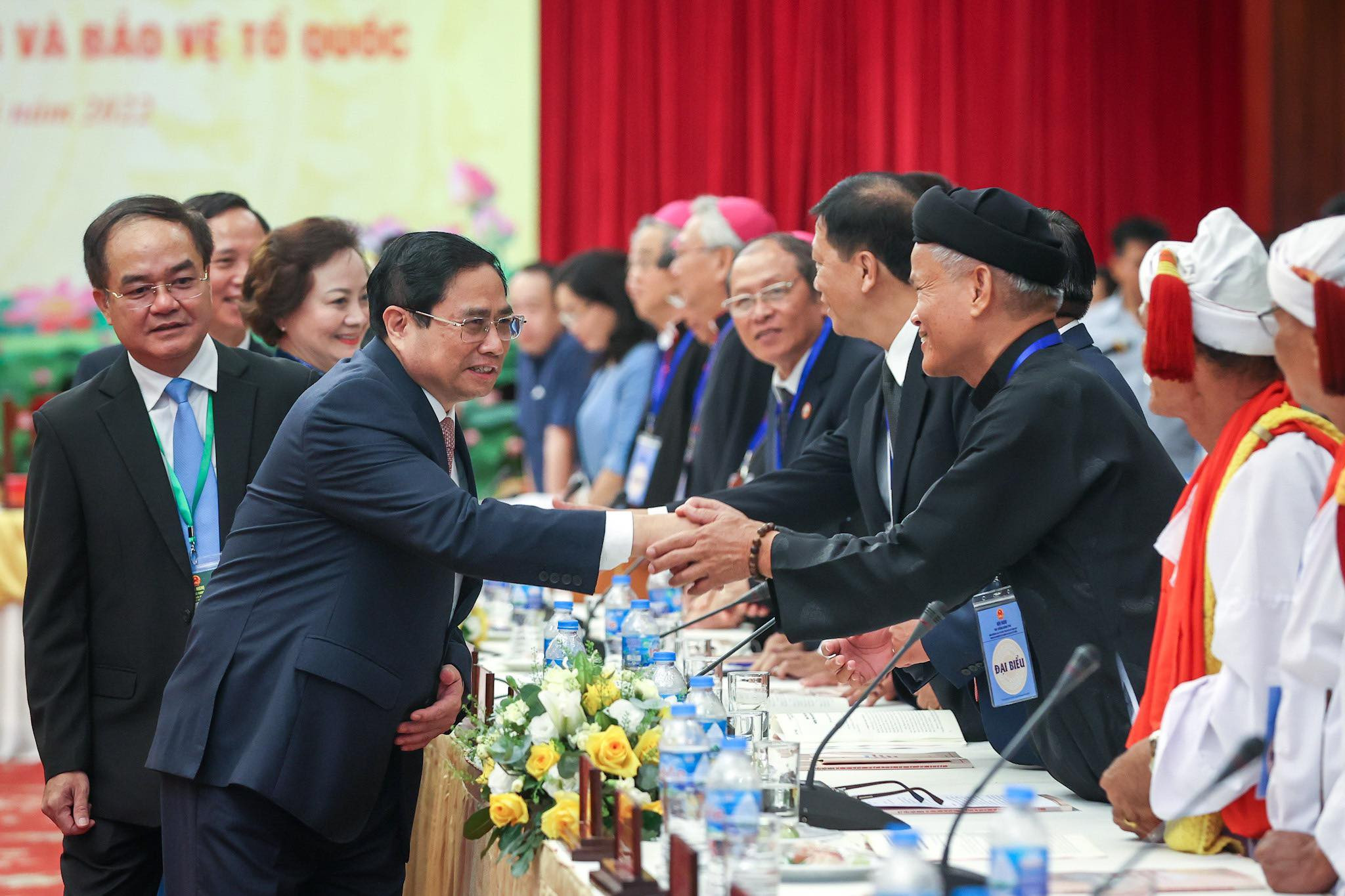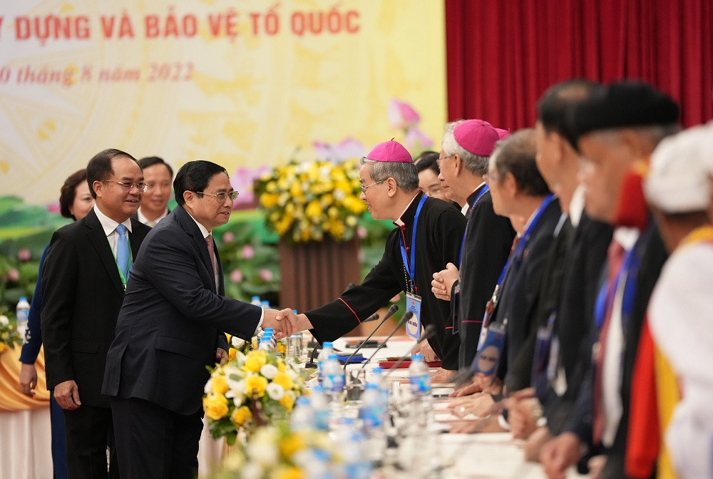 Sau khi nghe phát biểu của đại diện các tôn giáo, Thủ tướng Phạm Minh Chính khẳng định: Có thể nói, đất nước ta có phong trào gì thì các tôn giáo hưởng ứng tích cực và có hiệu quả phong trào đó. Đất nước ta có khó khăn, thách thức gì thì với tinh thần đại đoàn kết dân tộc, các tôn giáo cùng với đất nước vượt qua mọi khó khăn, thử thách để xây dựng và bảo vệ Tổ quốc. Đất nước có cơ hội và thời cơ gì, các tôn giáo cũng góp phần thúc đẩy mạnh mẽ để phát triển đất nước, góp phần xây dựng đất nước hùng cường, nhân dân ngày càng ấm no, hạnh phúc.