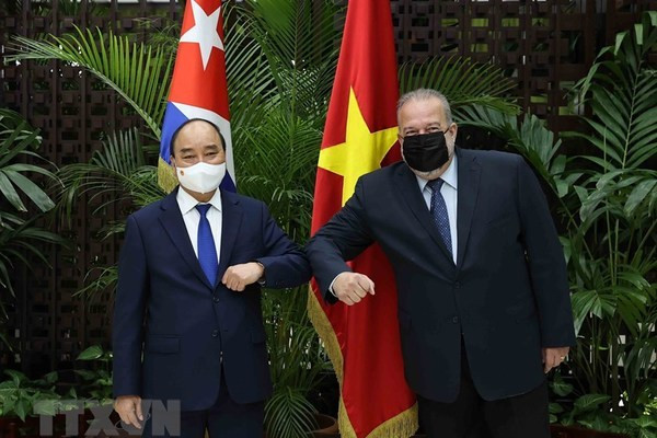 Tiếp tục chương trình thăm chính thức Cộng hoà Cuba, sáng 19/9/2021(theo giờ địa phương), tại thủ đô La Habana, Chủ tịch nước Nguyễn Xuân Phúc hội kiến Thủ tướng Cuba Manuel Marrero Cruz.