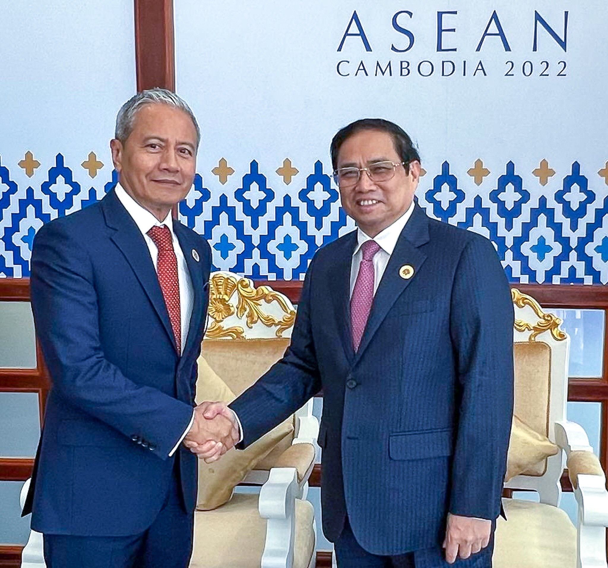 Ngày 11/11, nhân dịp tham dự Hội nghị Cấp cao ASEAN lần thứ 40, 41 tại thủ đô Phnom Penh (Campuchia), Thủ tướng Phạm Minh Chính gặp song phương với Tổng thống Indonesia Joko Widodo, Thủ tướng Thái Lan Prayut Chan-o-cha, Chủ tịch Hạ viện Malaysia Tan Sri Azhar Azizan Harun.