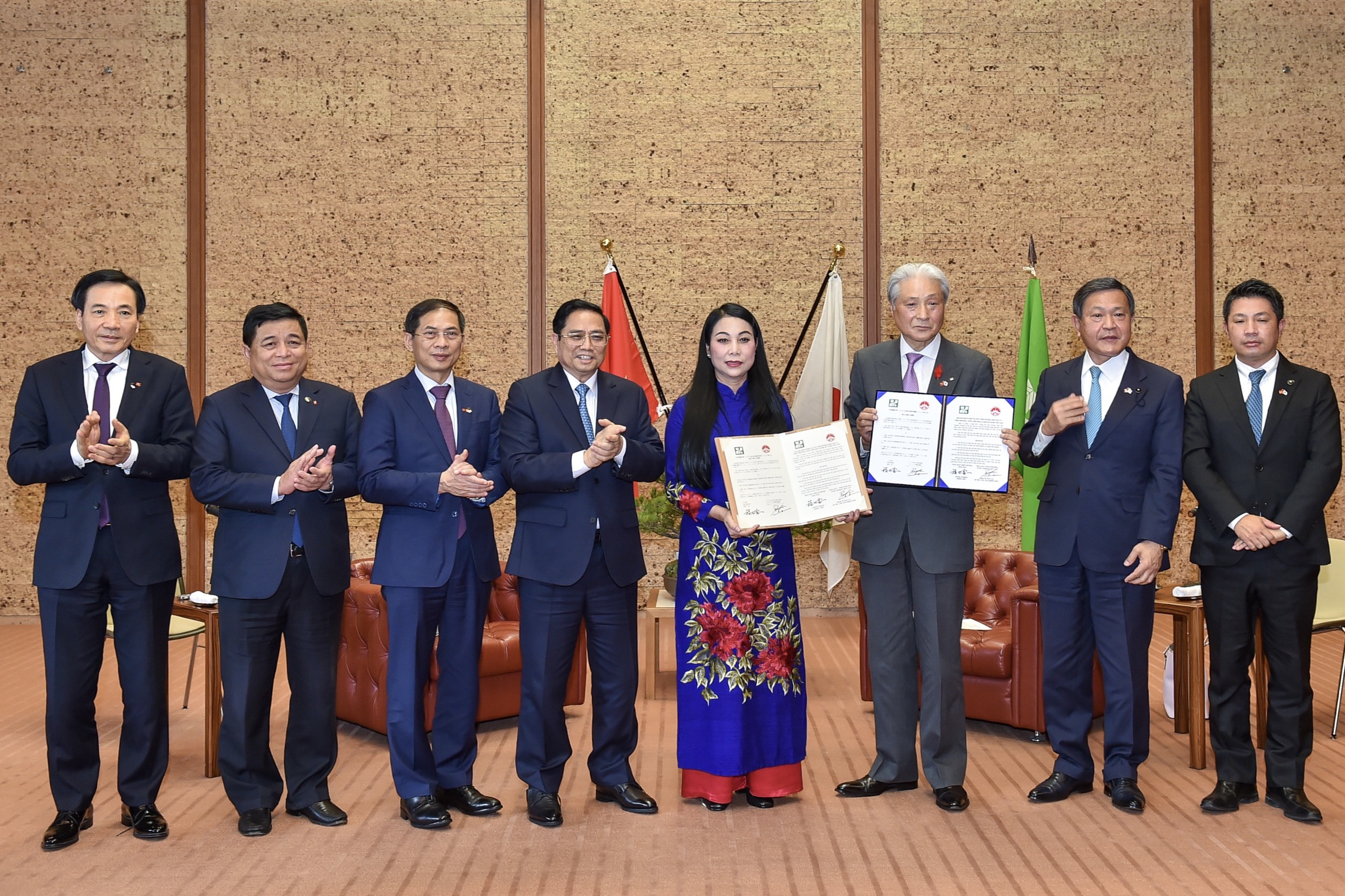 | Thủ tướng Phạm Minh Chính chứng kiến lễ ký kết thỏa thuận hợp tác giữa tỉnh Vĩnh Phúc và tỉnh Tochigi. Ảnh: Nhật Bắc |