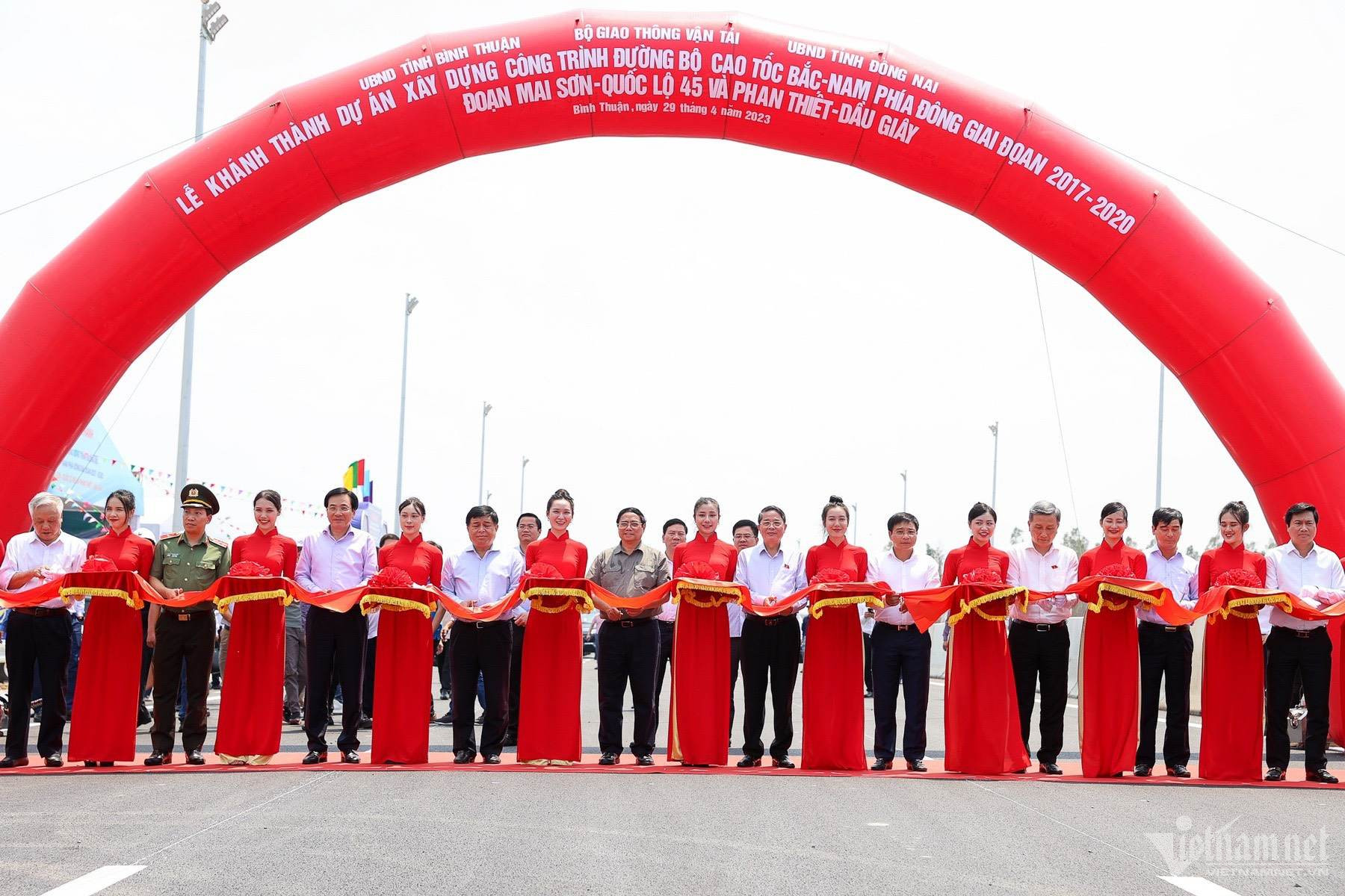 Thủ tướng Chính phủ Phạm Minh Chính dự và cắt băng khánh thành cao tốc Phan Thiết - Dầu Giây tại điểm cầu nút giao Phan Thiết, xã Hàm Kiệm, huyện Hàm Thuận Nam (tỉnh Bình Thuận).