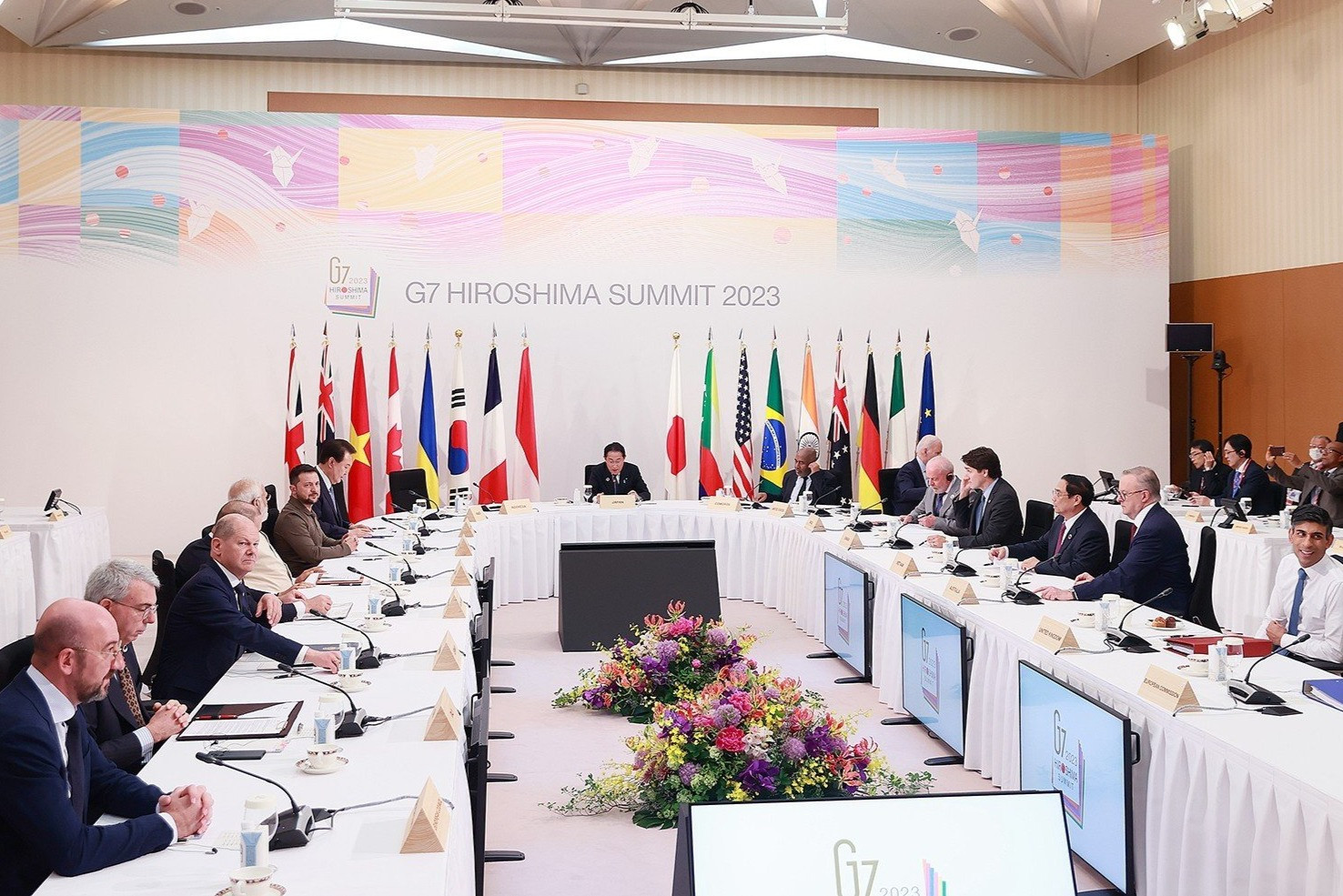 Cuối tháng 5 vừa qua, trong khuôn khổ Hội nghị Thượng đỉnh G7 mở rộng, Thủ tướng Phạm Minh Chính dự và phát biểu tại Phiên họp “Hướng tới một thế giới hòa bình, ổn định và thịnh vượng”.