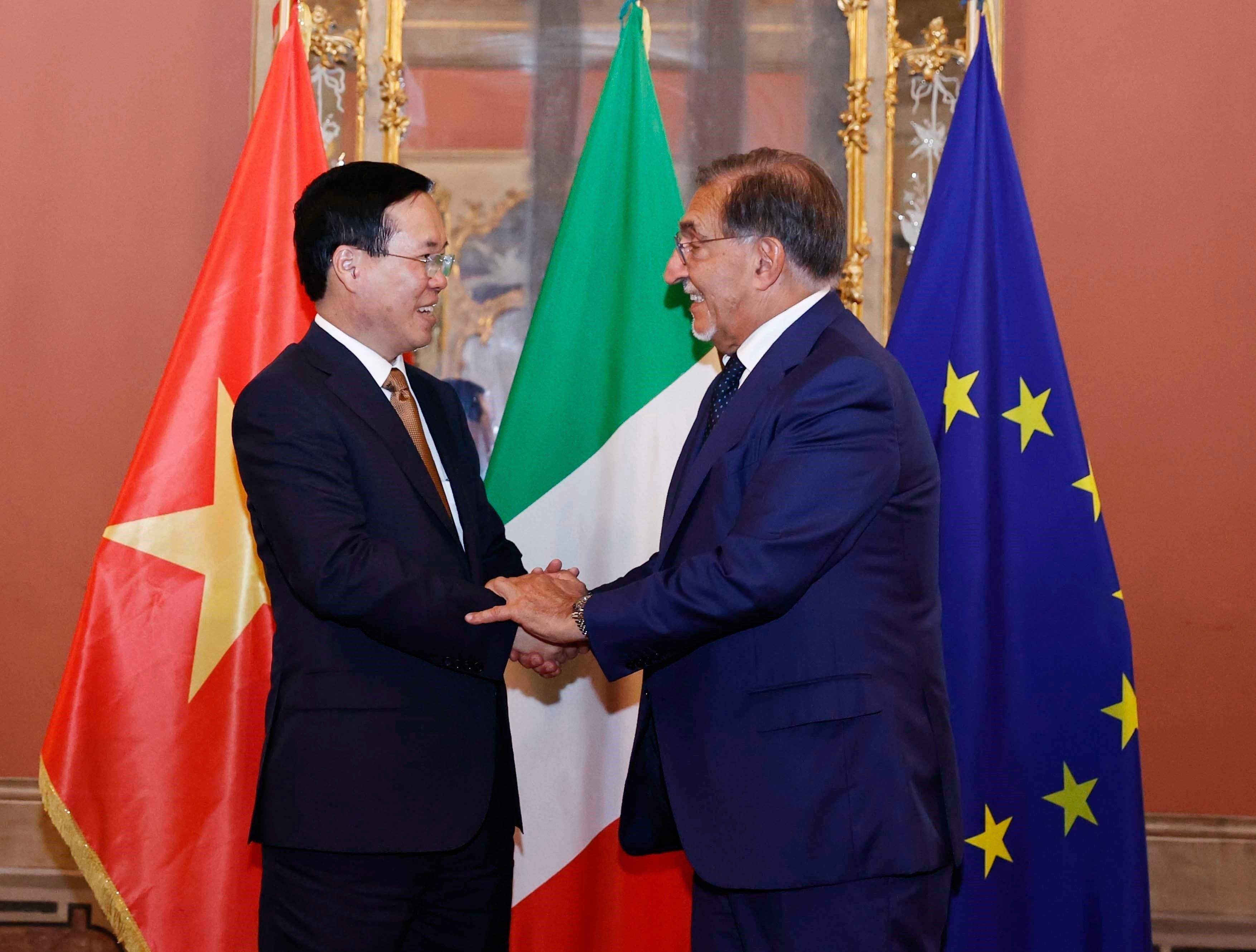 Chủ tịch Thượng viện Italia Ignazio La Russa cho biết, đây là trao đổi đoàn cấp nguyên thủ đầu tiên giữa hai nước trong 7 năm qua, tạo dấu mốc quan trọng trong hợp tác song phương. Chủ tịch Thượng viện Italia nhấn mạnh tình hữu nghị, đoàn kết giữa nhân dân hai nước, Việt Nam là đối tác quan trọng nhất của Italia trong ASEAN.