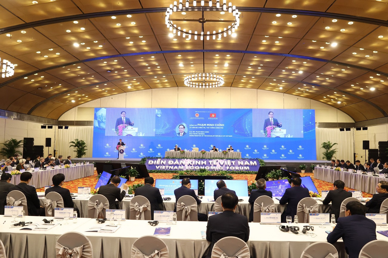 Chiều 17/12, tại Hà Nội, Thủ tướng Phạm Minh Chính chủ trì phiên toàn thể cấp cao Diễn đàn Kinh tế Việt Nam lần thứ 5 với chủ đề "Tổng quan kinh tế Việt Nam năm 2022 và định hướng điều hành năm 2023".