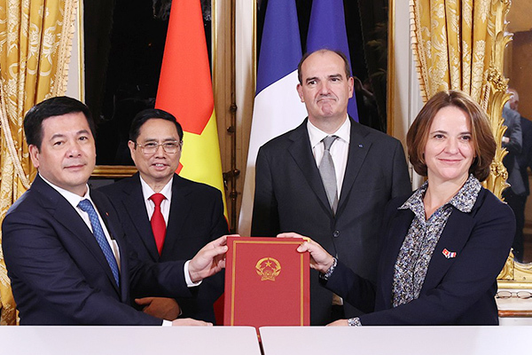 Tối 4/11 (theo giờ địa phương), Thủ tướng Phạm Minh Chính và Thủ tướng Cộng hoà Pháp Jean Castex chứng kiến lễ ký kết nhiều thỏa thuận hợp tác giữa các cơ quan và doanh nghiệp hai nước có trị giá hàng chục tỷ USD.