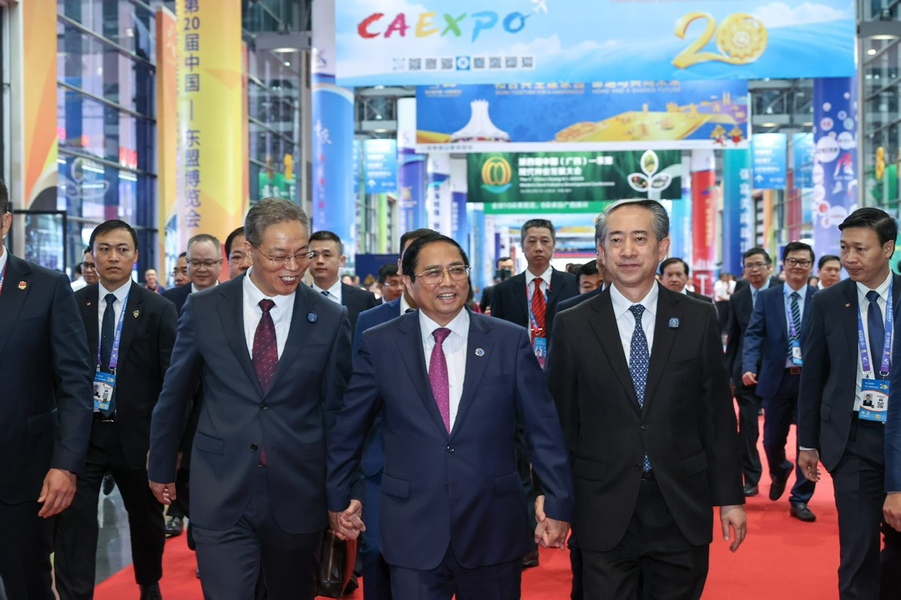 Trưa 17/9, trước khi lên máy bay về Việt Nam, kết thúc thành công tốt đẹp chuyến công tác đến Trung Quốc, Thủ tướng Phạm Minh Chính đã dự khai trương khu gian hàng thương mại của Việt Nam tại hội chợ Trung Quốc - ASEAN (CAEXPO).