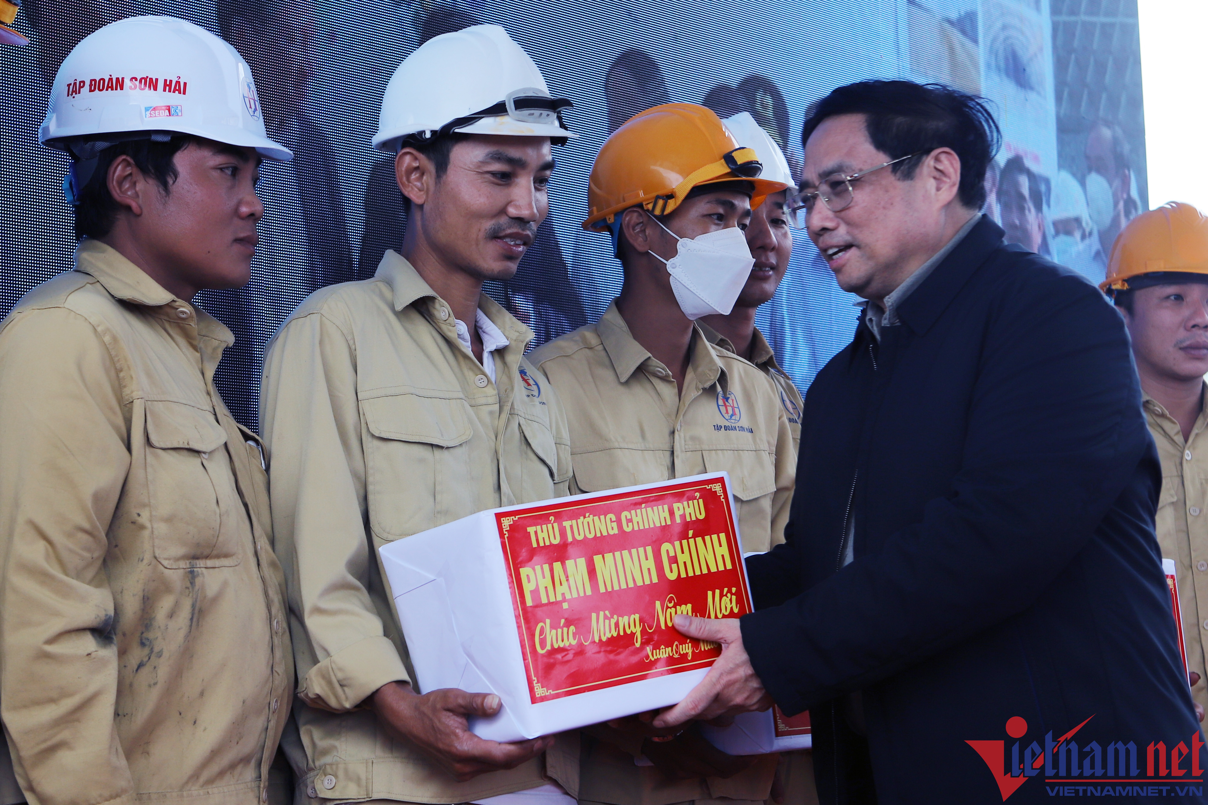 Sau khi kiểm tra, khảo sát, Thủ tướng Phạm Minh Chính đánh giá cao, biểu dương tinh thần thi công khẩn trương với phương châm “Đã nói là làm, đã cam kết thì thực hiện, đã thực hiện thì có hiệu quả đo đếm được” của Tập đoàn Sơn Hải - chủ đầu tư.