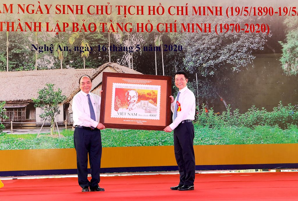 Trong khuôn khổ lễ phát hành đặc biệt bộ tem, Bộ trưởng Bộ TT&TT Nguyễn Mạnh Hùng đã trao tặng Thủ tướng Nguyễn Xuân Phúc và Lãnh đạo tỉnh Nghệ An bức tranh tem Kỷ niệm 130 năm ngày sinh Chủ tịch Hồ Chí Minh (19/5/1890-19/5/2020) và 50 năm thành lập Bảo tàng Hồ Chí Minh (1970-2020).