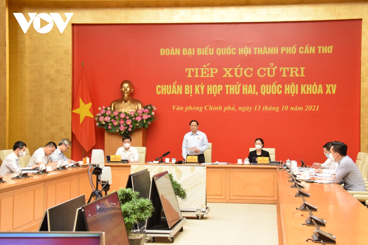 Với tư cách là Đại biểu Quốc hội của thành phố Cần Thơ, Thủ tướng Chính phủ chia sẻ một số nội dung, vấn đề được cử tri quan tâm như: công tác phòng, chống dịch Covid-19; tình hình phát triển kinh tế-xã hội 9 tháng năm 2021 của cả nước nói chung và của thành phố Cần Thơ nói riêng.