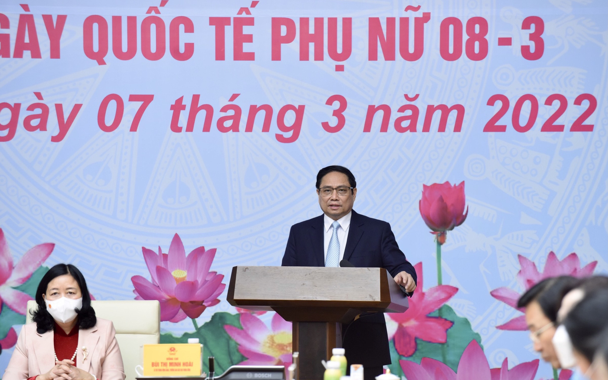 Thủ tướng chúc các đồng chí nữ lãnh đạo, quản lý, các nữ trí thức, văn nghệ si tiêu biểu luôn tươi trẻ, mạnh khỏe, hạnh phúc và tiến bộ - Ảnh VGP