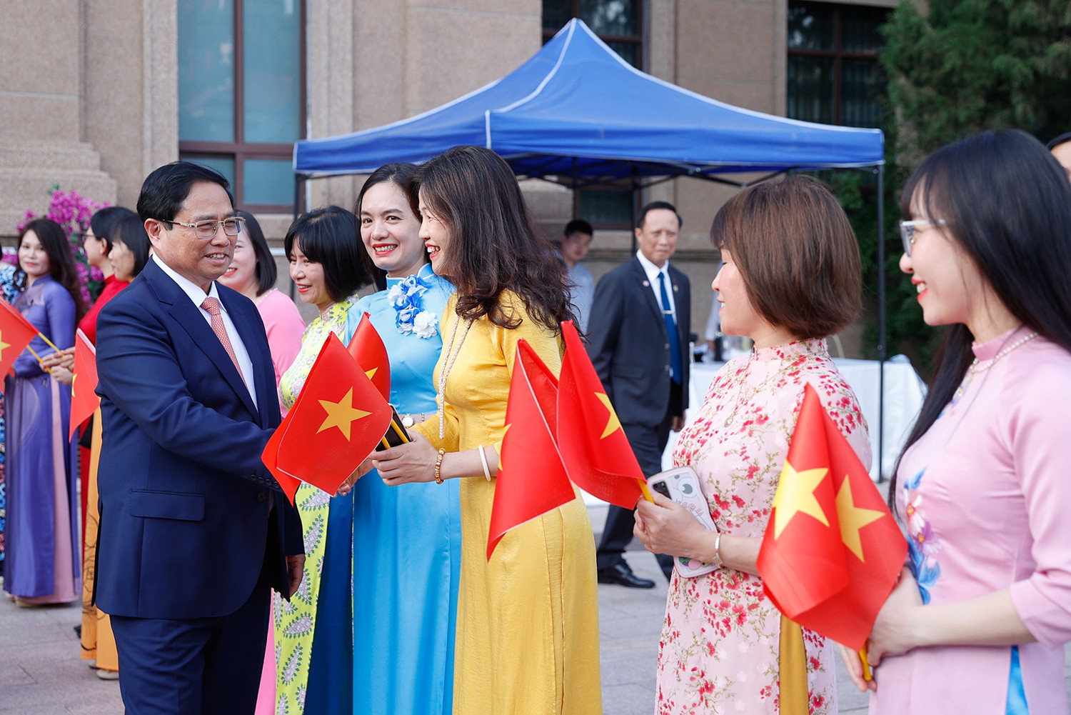 Thủ tướng Phạm Minh Chính bày tỏ vui mừng thăm lại Đại sứ quán và gặp gỡ bà con kiều bào trong chuyến công tác thứ 3 tới Trung Quốc trong 1 năm qua với kết quả “chuyến sau tốt hơn chuyến trước”.