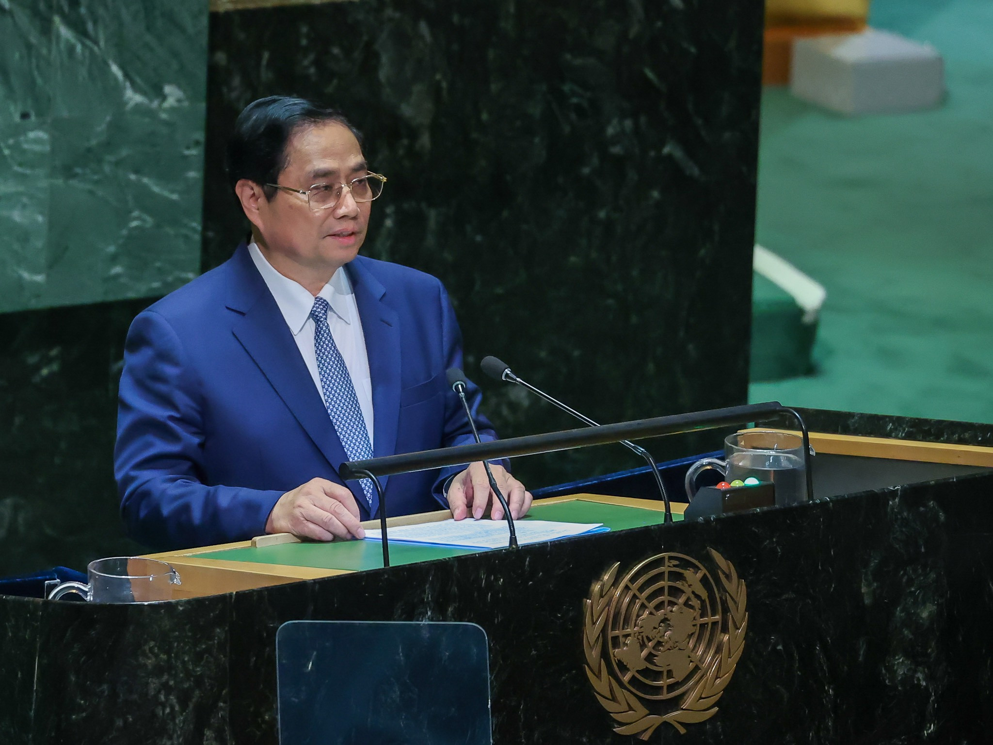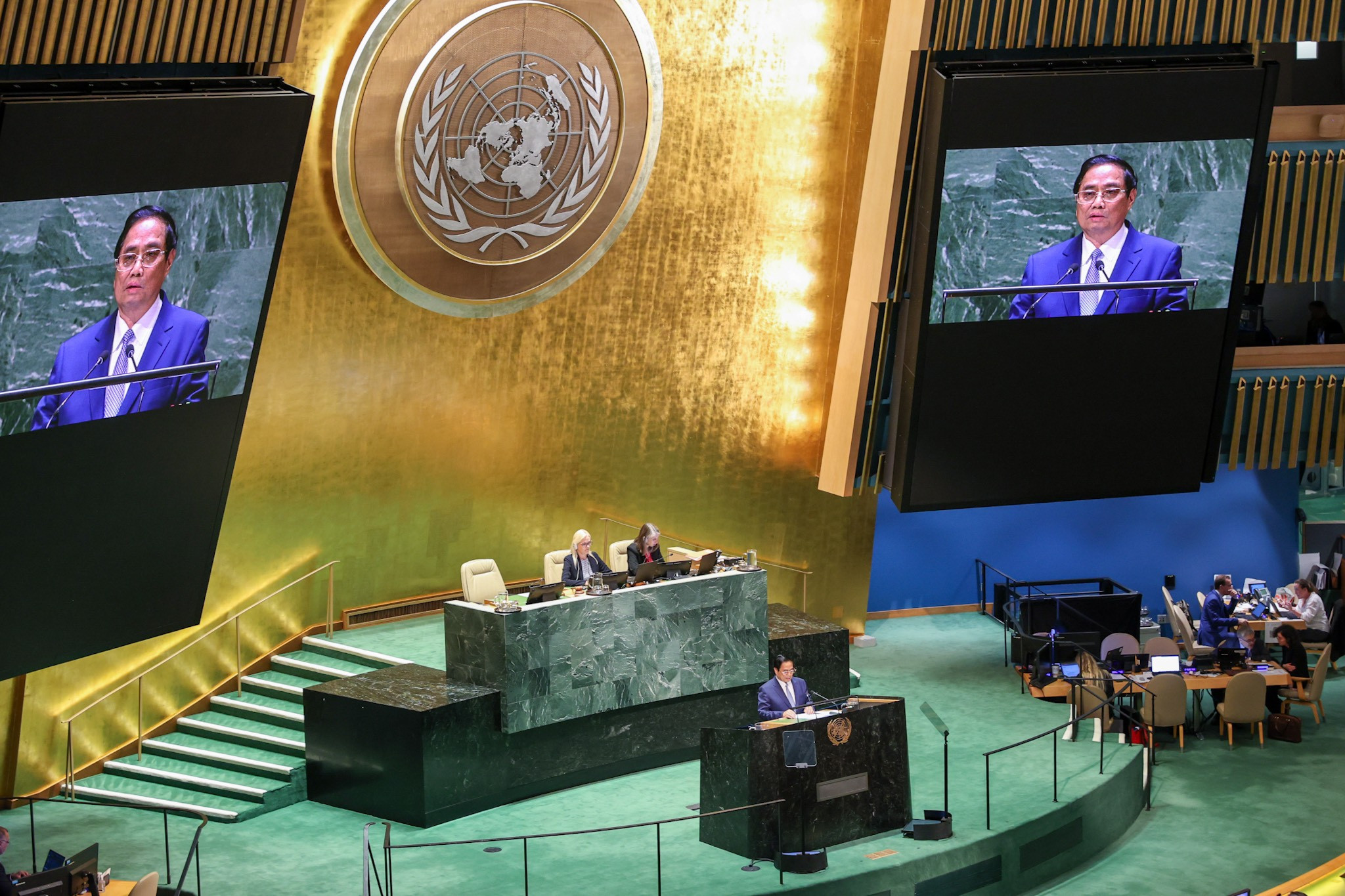 Chiều 22/9, Thủ tướng Phạm Minh Chính đã có bài phát biểu quan trọng trong Phiên thảo luận chung Cấp cao Đại hội đồng Liên Hợp Quốc khóa 78 diễn ra tại trụ sở Liên Hợp Quốc (New York, Mỹ).