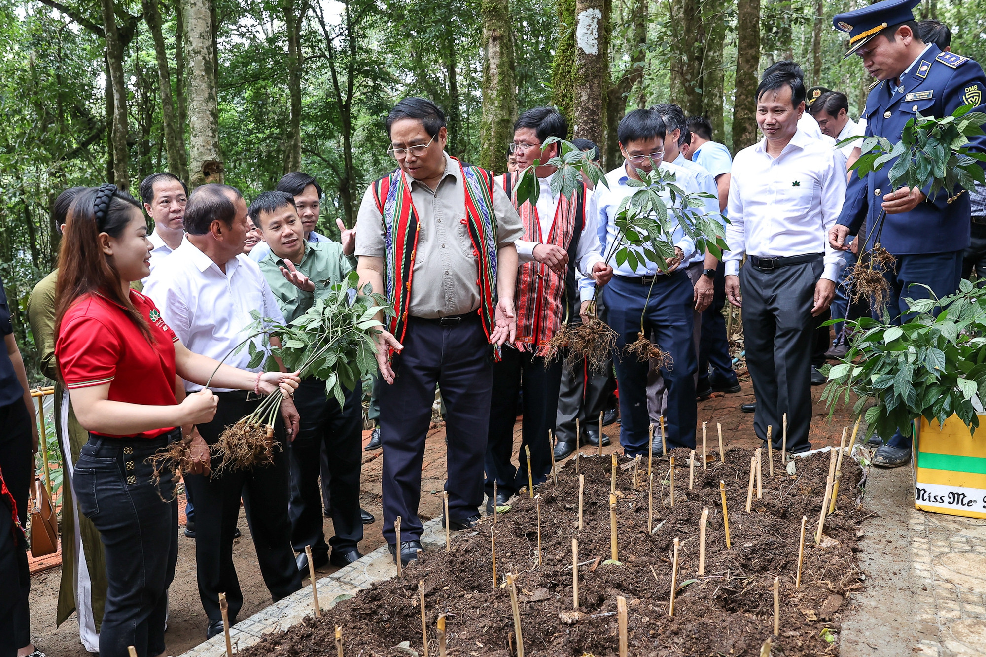 Thủ tướng Phạm Minh Chính tặng 12.000 cây giống sâm Ngọc Linh cho các hộ nghèo - Ảnh: VGP/Nhật Bắc