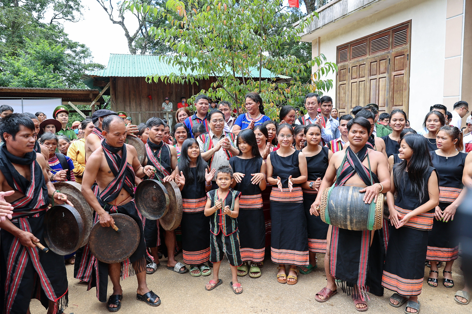 Thủ tướng chung vui cùng bà con trong các làn điệu âm nhạc dân tộc - Ảnh: VGP/Nhật Bắc