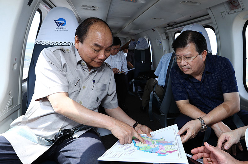 Thủ tướng Nguyễn Xuân Phúc thị sát vùng ĐBSCL bằng trực thăng