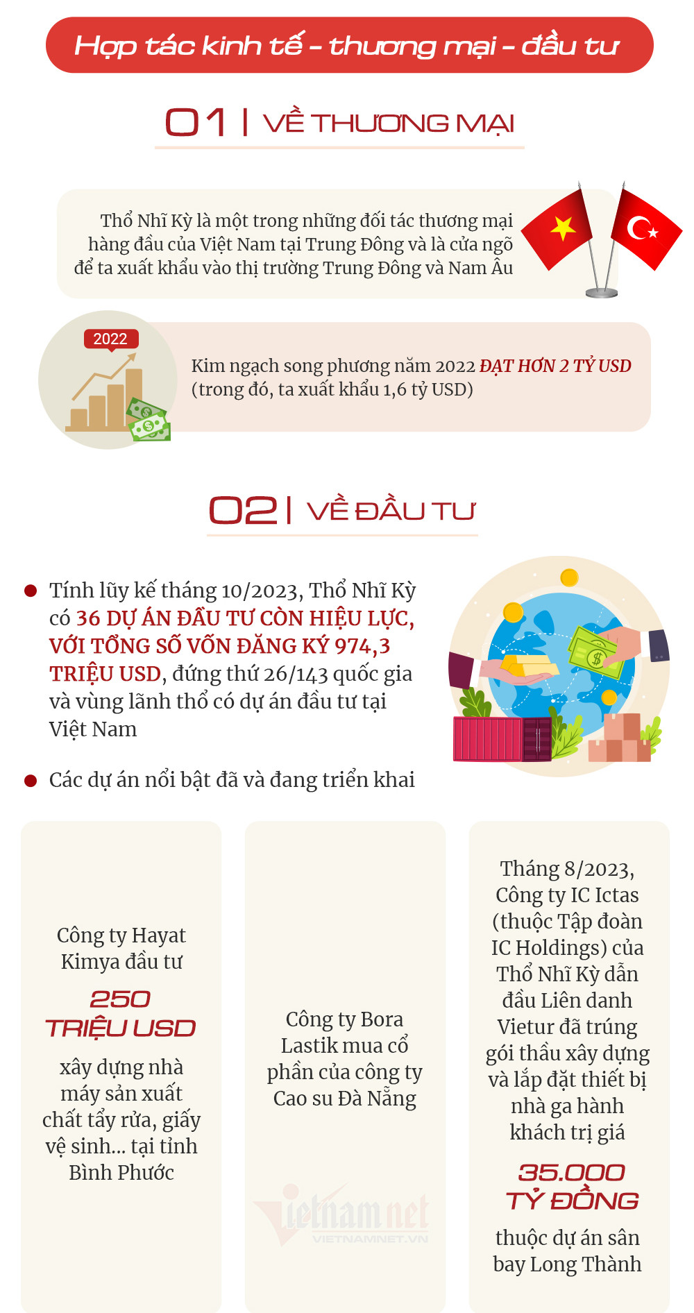 Việt Nam - Thổ Nhĩ Kỳ thiết lập quan hệ ngoại giao ngày 7/6/1978. Nhìn lại 45 năm thiết lập quan hệ, hai nước duy trì quan hệ hữu nghị và hợp tác nhiều mặt.