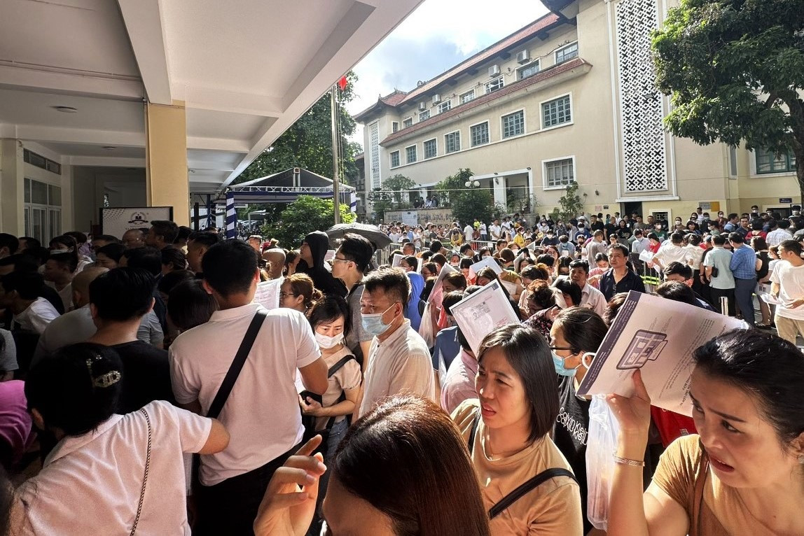 Phụ huynh xếp hàng xuyên đêm, chen lấn nộp hồ sơ vào lớp 10 một trường THPT tư thục ở Hà Nội sau khi không thể vào được trường công lập.