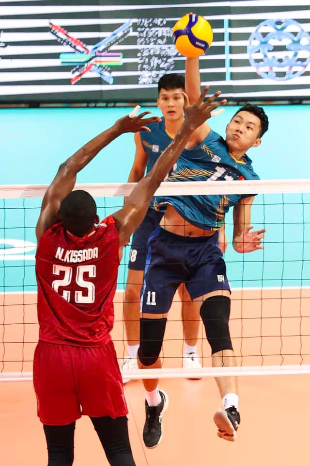Kissada chắn bóng thành công trước pha tấn công trên lưới của cầu thủ Việt Nam.